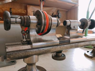 This machine is called watchmaker’s lathe and used for making the parts of clock as its name suggests. Our craftsman use this for processing the wood cantilever.