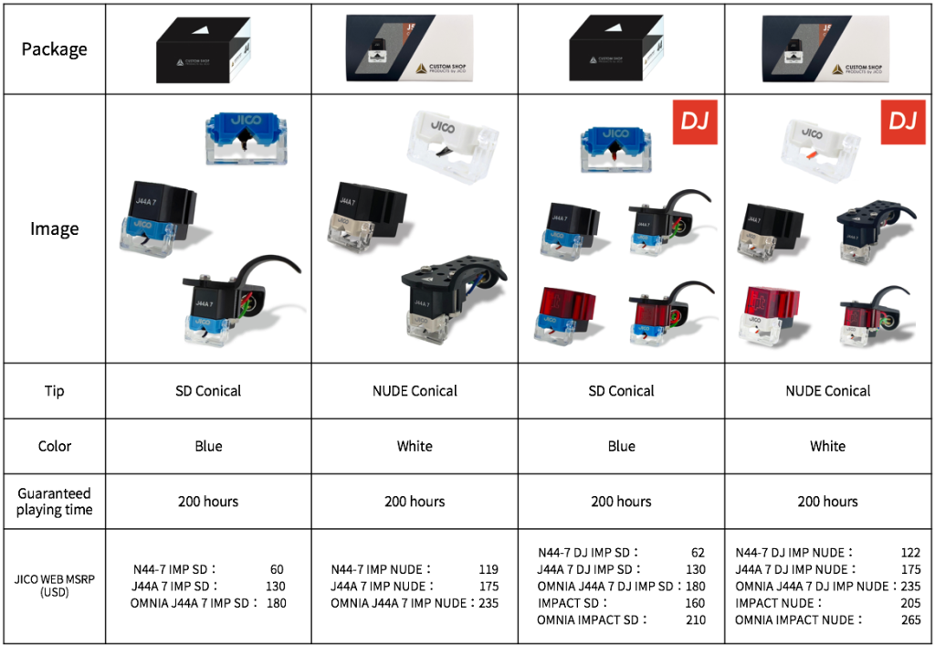 For our MM cartridges – J44, J50, and IMPACT – along with the original MORITA cantilever and the SAS series, you can now enjoy JICO’s sound with a wide variety of combinations, including multiple tip shapes. We invite you to explore the distinctive audio experience that JICO offers.
