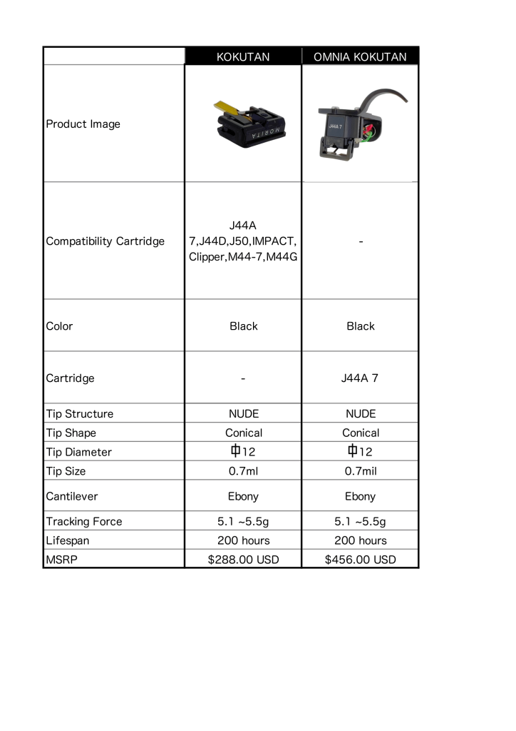 “KOKUTAN” (Ebony) Replacement Stylus – Compatible with 44 model cartridges, priced at USD288.00.