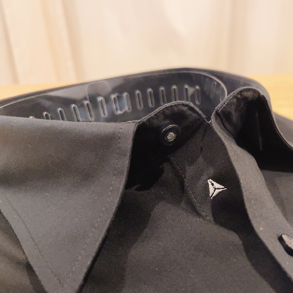 -Design: Original Embroidery The original JICO symbol is featured on the left chest. JICO Custom Shop logo between the first and second top buttons.